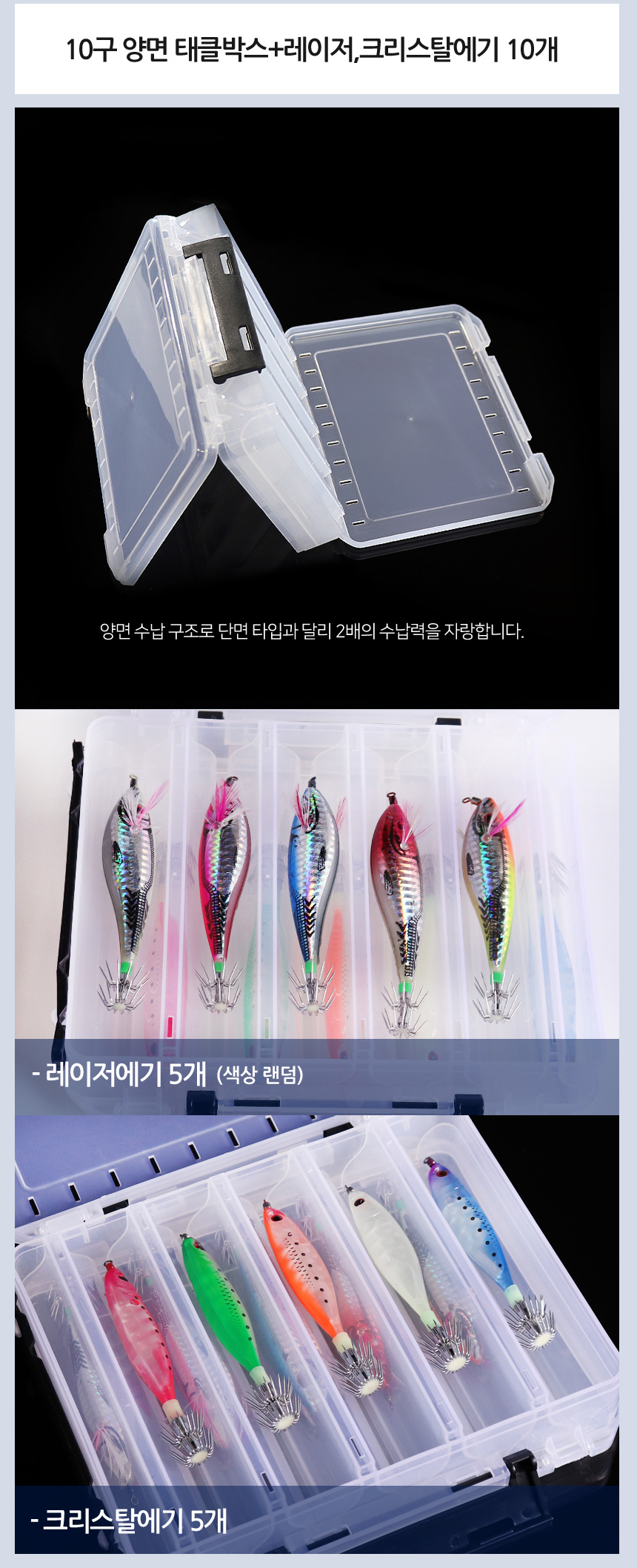 - 10구 양면태클박스와 에기(10개)를 한 번에!