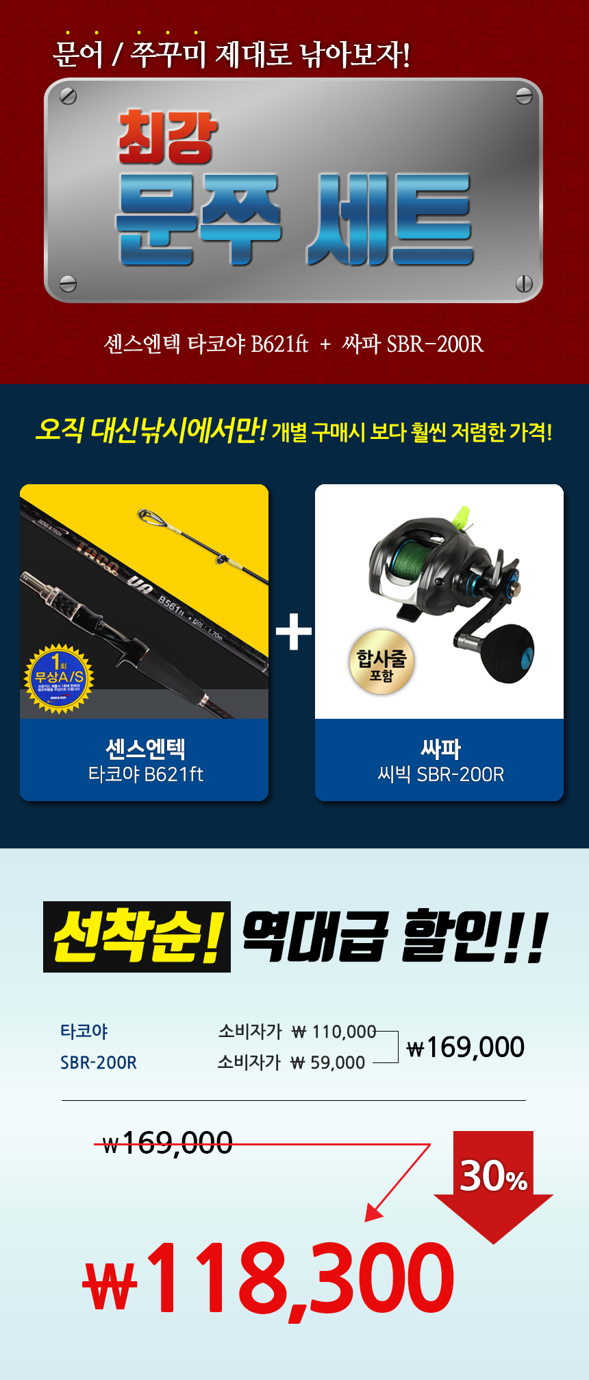■대신낚시■ 최강 쭈꾸미낚시세트! 쭈꾸미대와 릴을 한 번에!