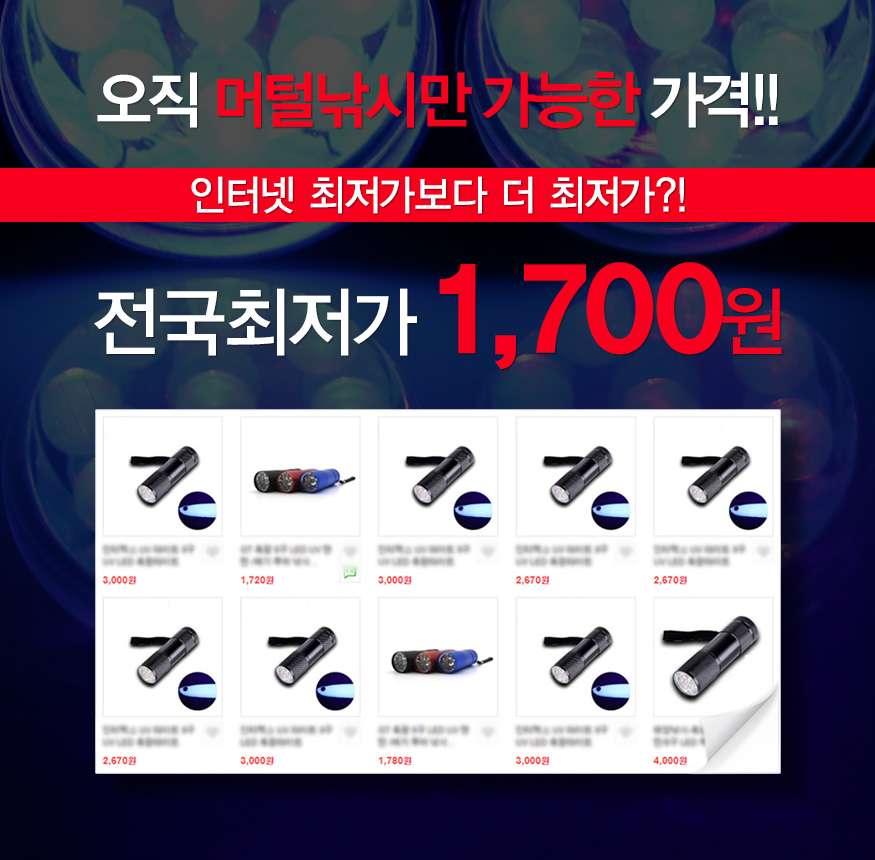 ★머털낚시★ [전국최저가] 넘밝아 9구 LED 건전지형 UV 축광기