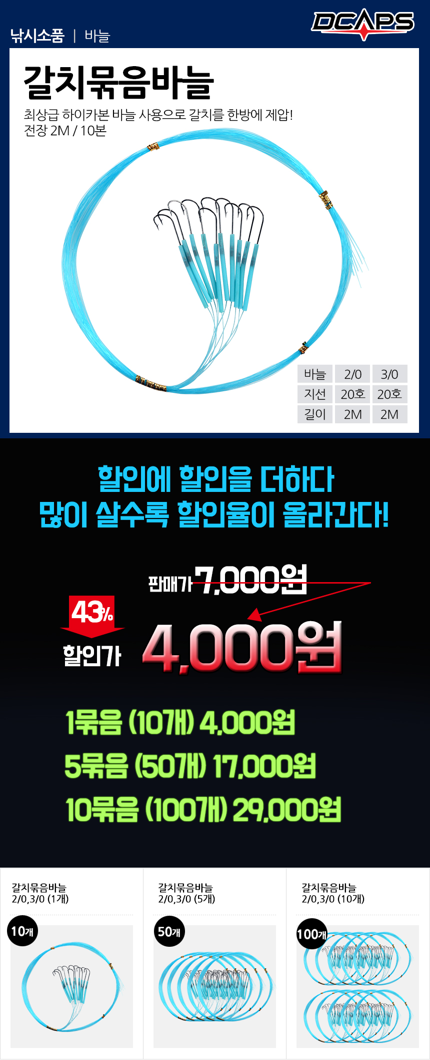 - 미세한 입질에도 탁월한 훅킹을 자랑하는 캡스 갈치 묶음바늘