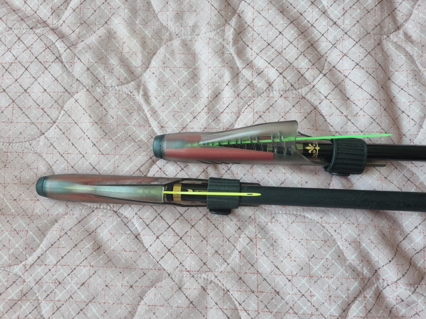 나기사가 약 10~15cm 초리를 해먹은 상태인데도 나기사가 더 얇네요. 헤리티지는 통튜블러 초릿대라고 합니다. 굵기도 굵지만 초리가 확실히 빳빳하네요. 초리를 눈으로 보는 입질 파악에는 불리할지라도 바람 부는 날 악조건속에서 초릿대를 통한 입질 감도를 통한 입질 파악에 좋아보입니다.