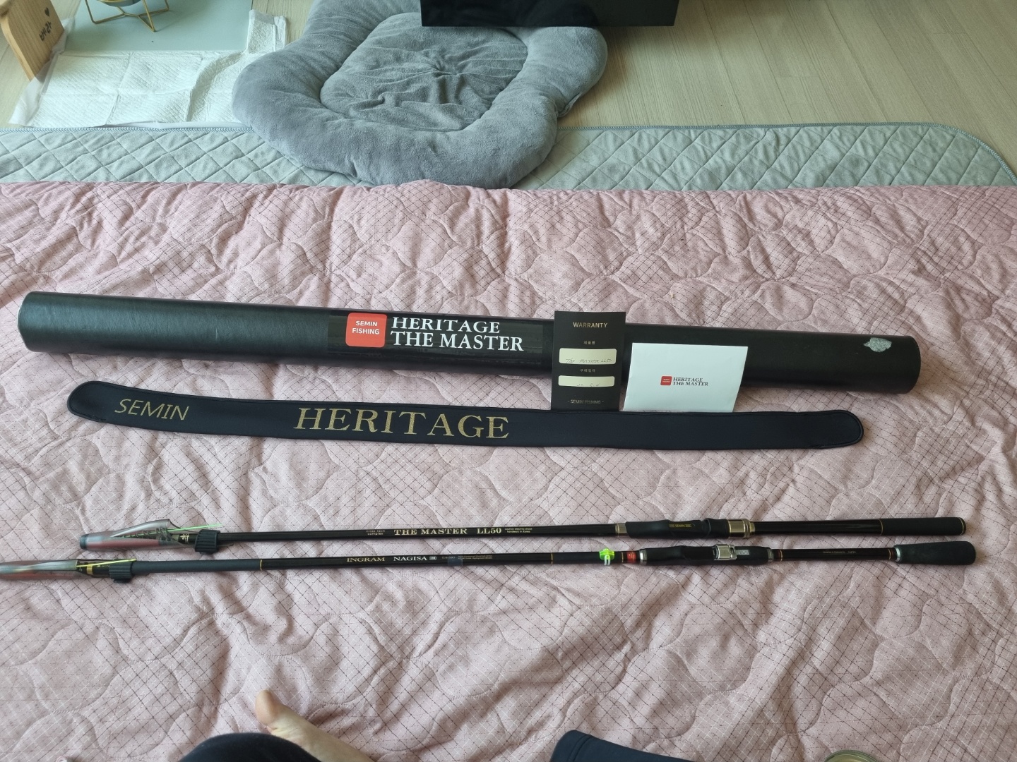 알아보던 중 영상팬텀기 0호대가 타사 낚시대 0.6호 스펙에 허리힘도 좋고 후기도 좋았으나 60만원대라는 가격에 절망하던 중 찾은 것이 영상산업 사장님이 OEM방식으로 제작하시는 세민피싱 헤리티지 LL50대였습니다.