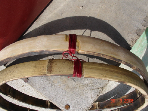 그런데 작은 원으로 휘다 보면 아래쪽 대나무의 강도가 더 좋아서 원형이 제대로 나오기 참 힘듭니다.