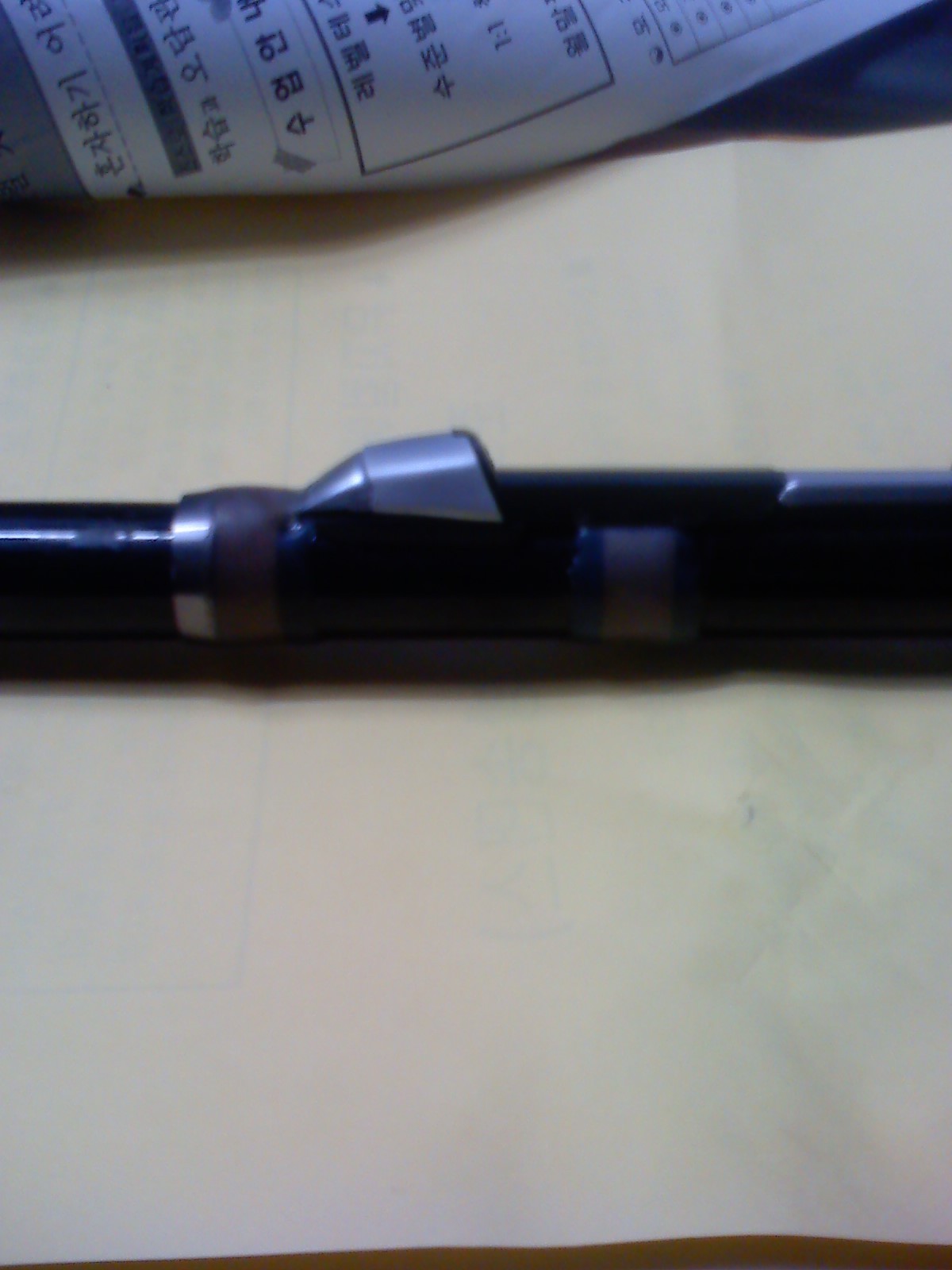 칼로 자르던지 톱으로 자르던지 해야합니다. 상당한 시간과 조심성이 필요해요. 잘못하면 낚시대 버립니다. 낚시대 블렝크에 기스나면 그부분이 약해지거나 파손됩니다. 조금씩 깍아내서 낚시대에 상처가 안나도록 주의하셔야 해요.
