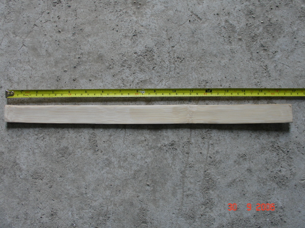 보강 대는 안쪽과 바깥쪽을 다 대야 하므로 두쪽을 만들어야 하는데 길이는 바깥쪽이 약35cm에서 42cm, 안쪽이 약25cm에서 28cm정도로 하는 것이 좋습니다만 전체의 후레임 크기에 따라 그 길이가 달라져야 하고 무게를 줄이기 위해서는 가능한 속대를 많이 깎아내야 하고 길이를 줄여야 하는데 너무 얇으면 부러질 위험도 있으니 그 중간치를 정하기는 경험치로만 가능할 것인데 쉽게 하자면 뜰채 결합 나사부위에서부터 양쪽으로 15cm에서 20cm정도로 하면 될 겁니다.