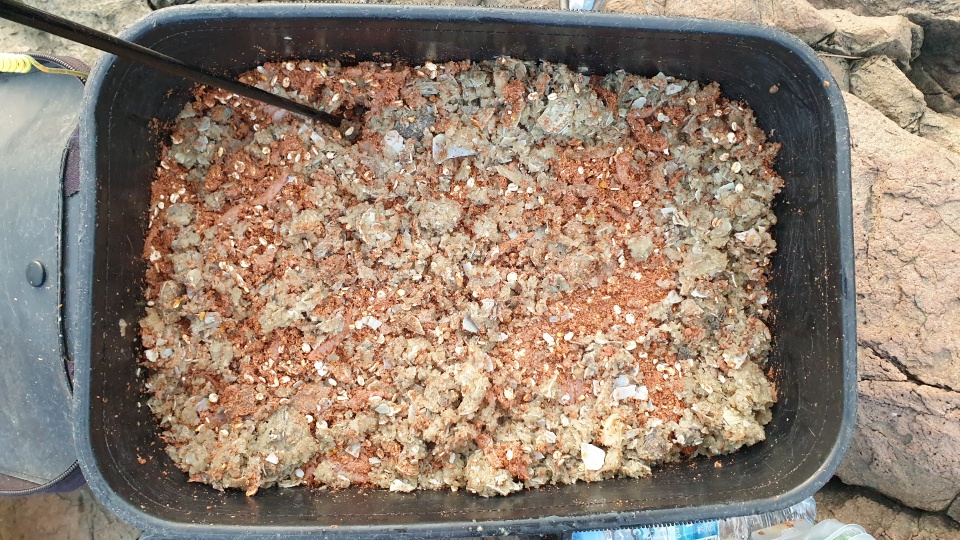 사실 이때 바지락밑밥을 함께 배합할 요량이 었는데