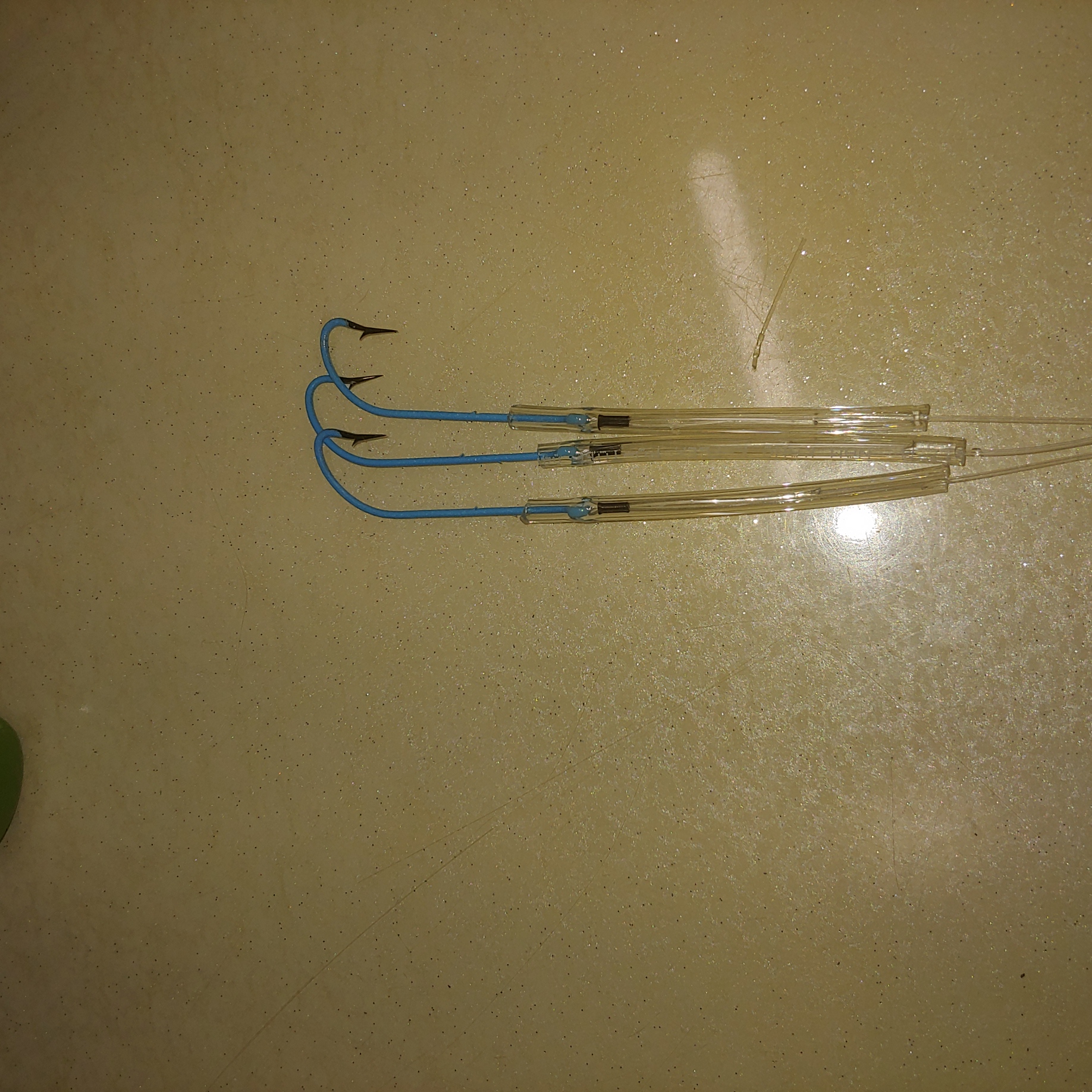 그리고 비교를 위해 가마가츠사 바늘에 무광튜브를 끼운 자작바늘과