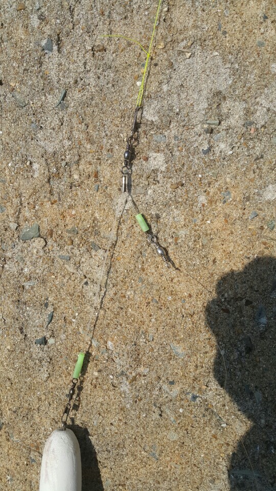 몇번의 원투를 해본 결과 동봉해온 채비사용시 목줄과 채비의 꼬임이 심하게 일어나서 봉돌다는 핀도래를 목줄 묶는곳으로 옮기고 다시 원투해보니 조금은 꼬임이 덜나타나는 현상이 보였네요.그리고 나서 원줄이 터져버려서 채비손실로 더이상 원투낚시는 하지 않았지만 바닥층의 여러 어종들을 만나볼수 있었습니다.~~