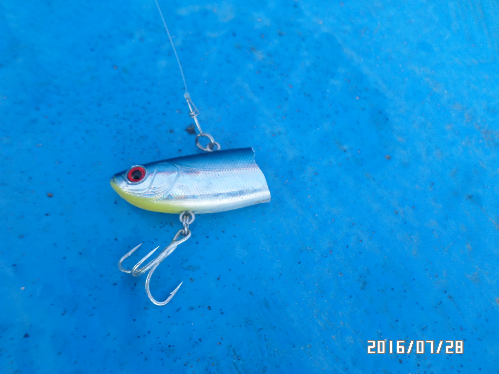 생각치도 않았던 중광어가 (23그람 CH-109)히트 되었고 또다시 케스팅을 하여 릴링을 하였는데 바이브가 두동강이 나서 올라옴.(갯바위에 붙이치지 않았는데 ~)