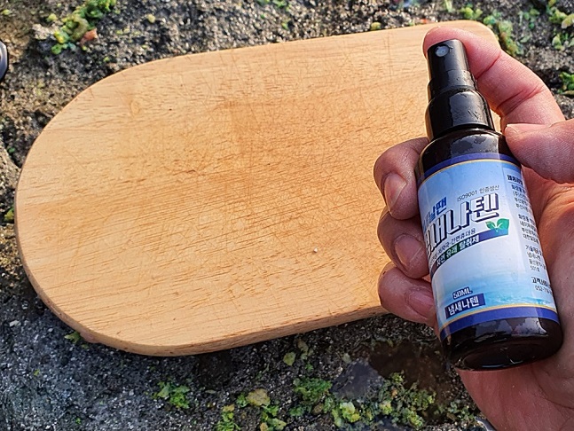 ' 냄새나텐 '을 도마에 분사를 해주었는데요.