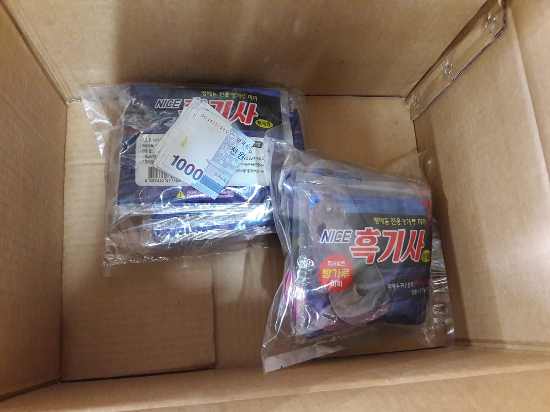 간단하게 겉 포장지만 뜯고 두레박에 담근 후 1분정도 지난 후 그대로 조물조물하면 미끼 제조 끗~~~