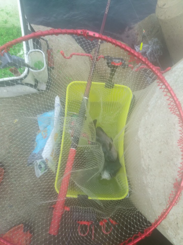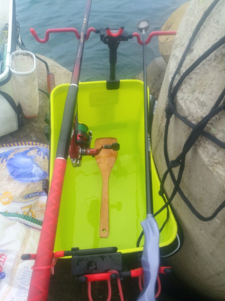 이번에도 물가득 부워놓고 고기 살림통겸 낚시대 뜰채 받침으로 사용했습니다! 튼튼하게 잘 받쳐주네요!