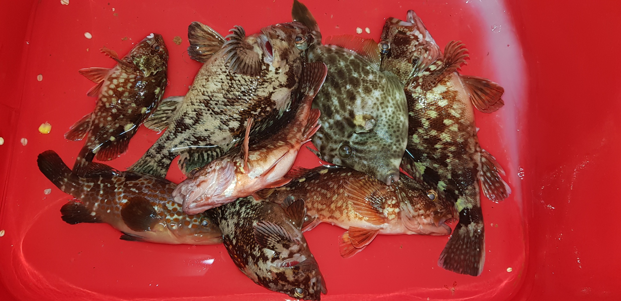 채비를 마치고 미끼는 파워크릴부터 사용해 봤습니다. 밑밥이 들어가면 사이즈 준수한 망상어가 엄청 극성을 보였는데요. 그래도 채비정렬까지 버텨주네요.