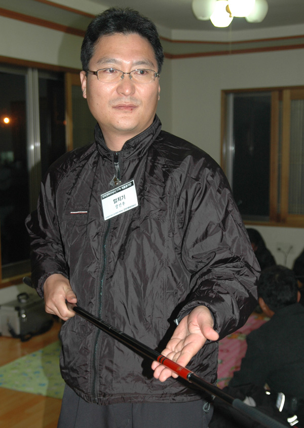 제가 말씀드린부분은 1차 시제품입니다..릴시트와 그립부분을 고정시켜주는 중간부에 그립과 밀착이 되지 않아서인지 뻐그적 소리가 나더군요..그래서 제가 순간 접착제로 발랐읍니다..그리고 시트 고정부위의 에폭시가 매끄롭지않고 구멍난것처럼 뻥하니 마무리가 안되어 있더군요.. 하여 찌에 입히는 도장을 몇번 덧발랐읍니다..