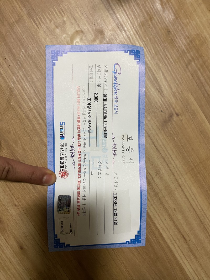 홀로그램 보증서에 붙혀놨구요