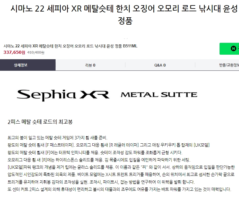 ■ 상세 설명 : 윤성정품 (보증서有) 세피아XR 메탈슷테 S70MH-S/R 팝니다