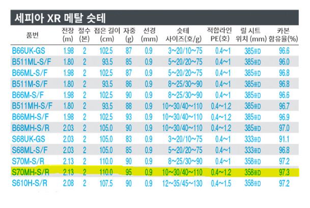 윤성정품) 세피아 XR 메탈슷테 S70MH-S/R (한치 오모리)