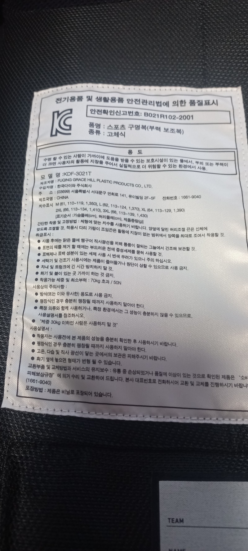 토너 구명복 L