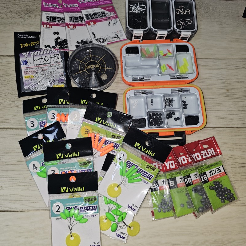 찌 긱스가 대부분이고 찌스 도 몇개있고 소품다판매해요 사진에는 않보이는데 토레이 1호0.8목줄도 있습니다