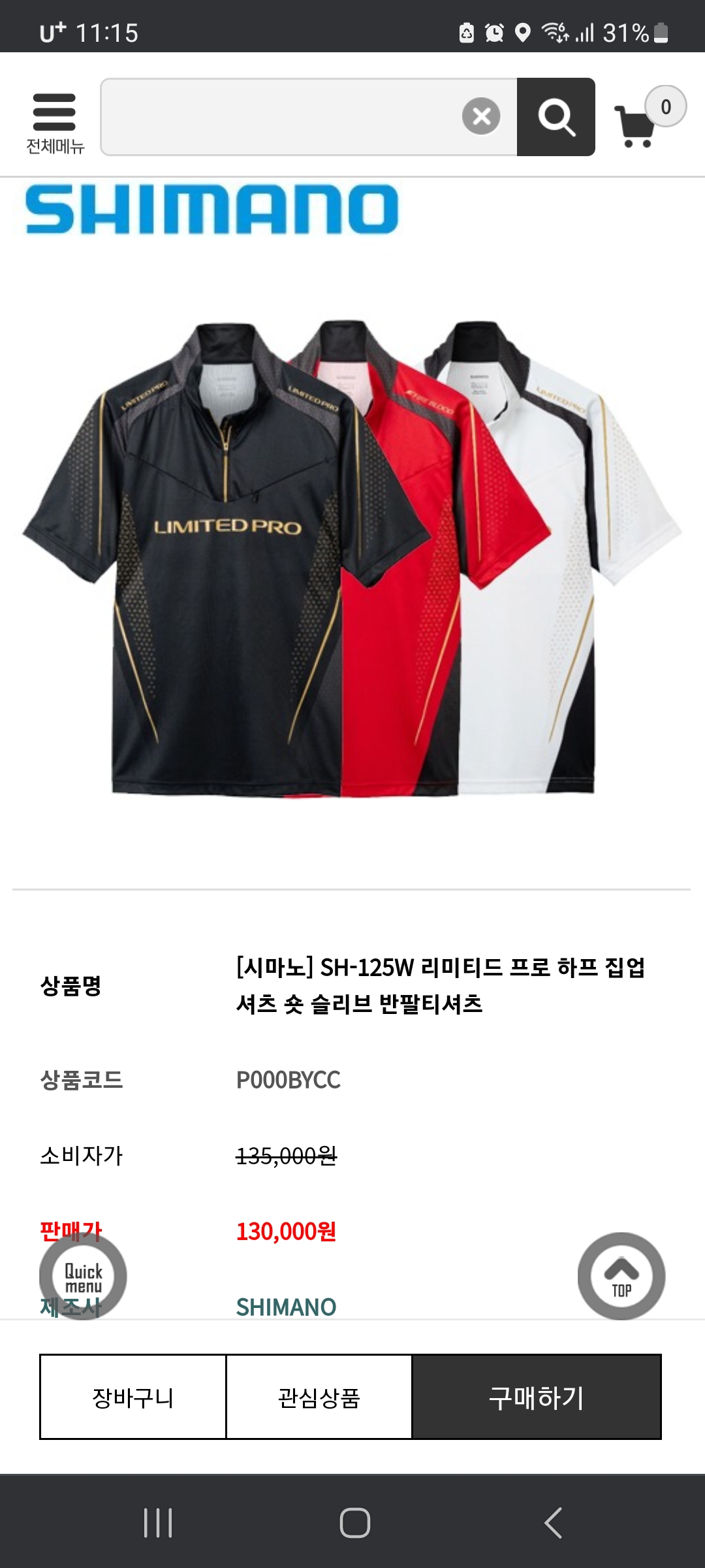 시마노 반팔 티셔츠