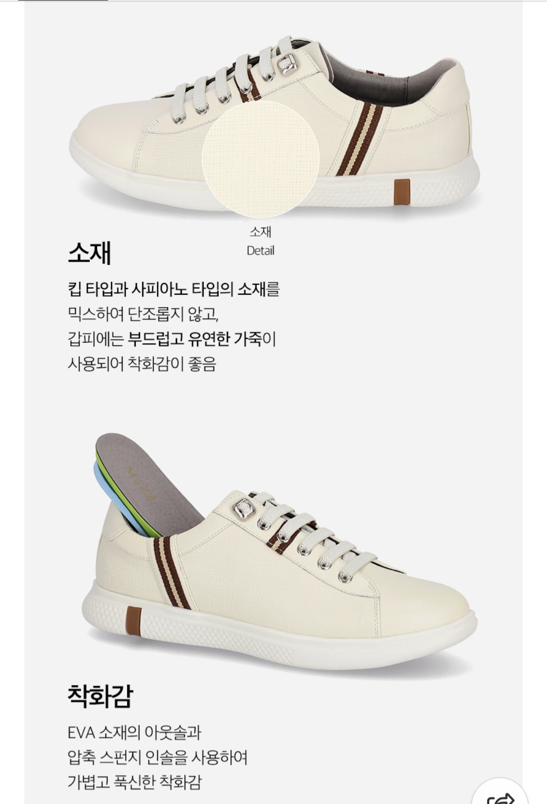 겉감 소가죽으로 착용감 및 내구성 좋고