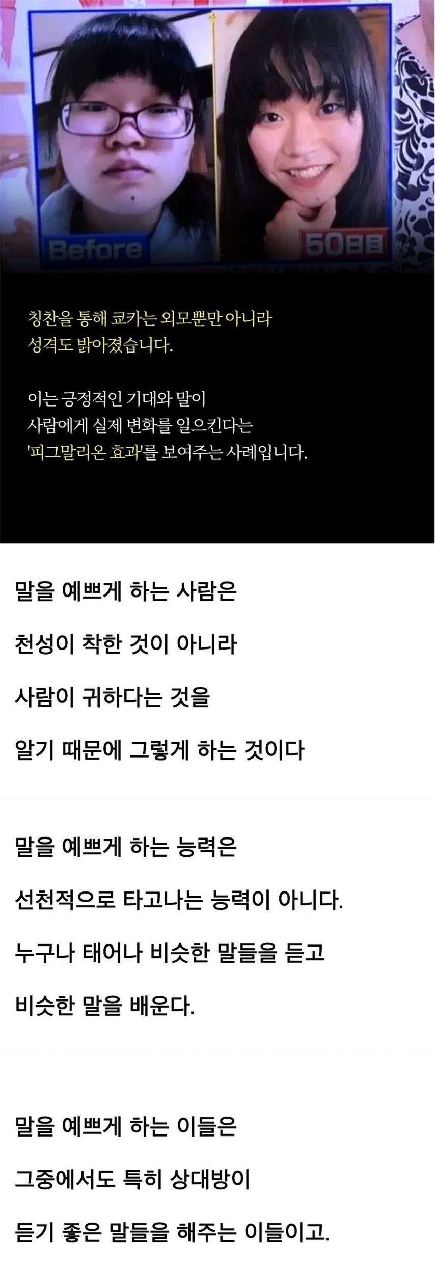 예쁘단 말하면 일어나는 변화...