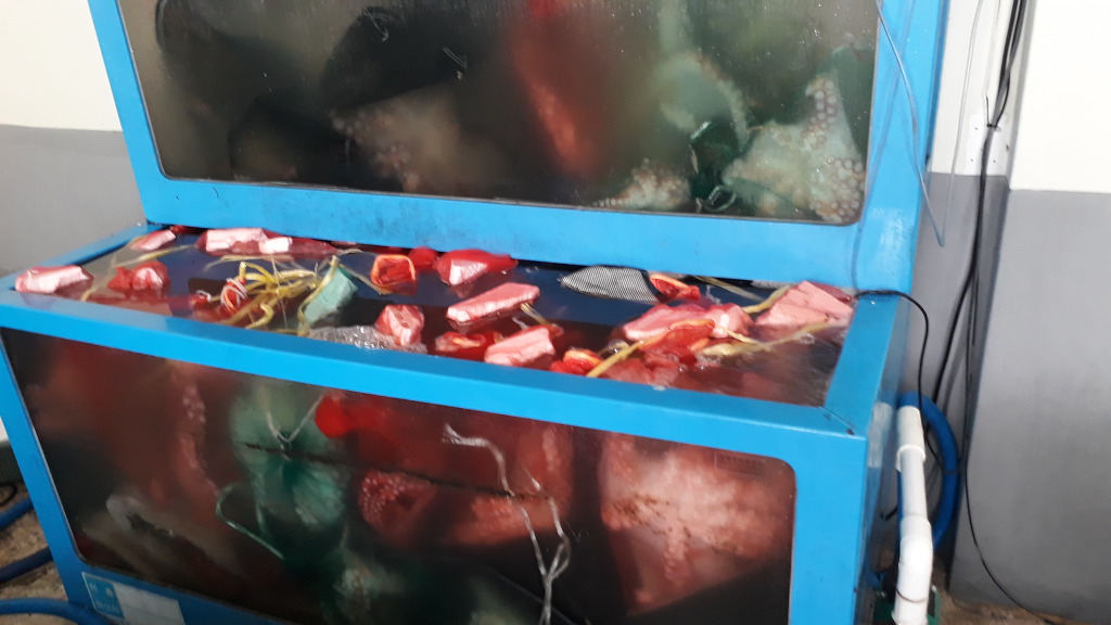 현재 살아 있는 활참문어 500kg보관중입니다..