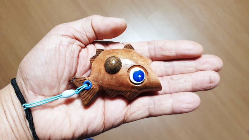 단단한 홍 느티나무로 깍은 물고기 형태의 지압봉입니다.