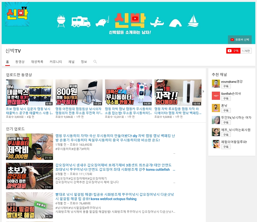 낚시,캠핑,레져,수산관련 콘텐츠를 제공하는 콘텐츠 공장장 신박입니다. 신박하고 좋은 아이템 리뷰와 여행 등 다양한 콘텐츠를 만들고 정보를알기쉽게 전달하는 유튜버입니다.