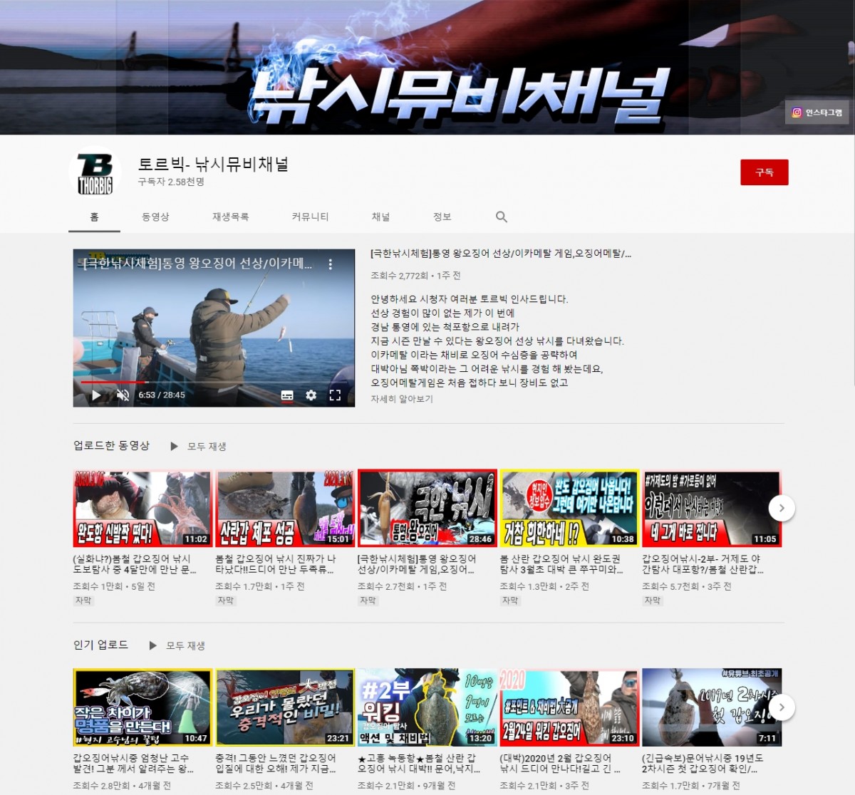 ▶낚시를 주제로 전문적으로 활동하는 채널(낚시인 유튜버) 정보 게시판입니다. |