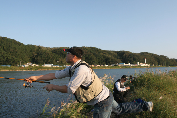 오십천에서 색다른 농어 손맛을 보세요.