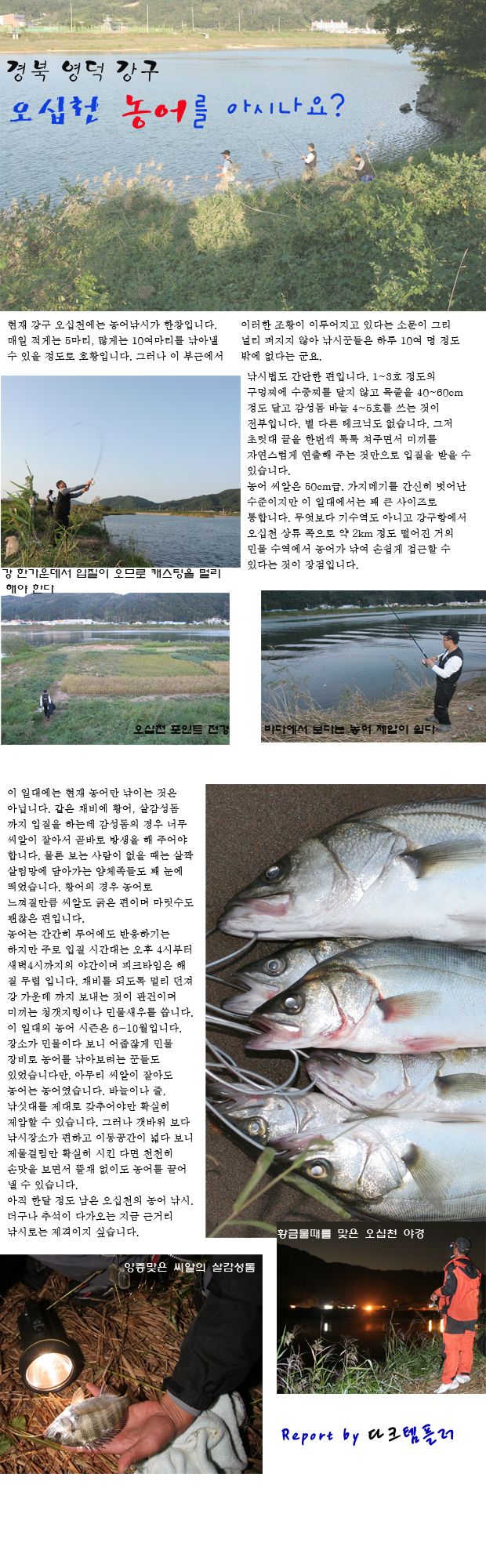 현재 경북 영덕의 강구항과 오십천을 잇는 기수역에서는 농어낚시가 한창입니다.