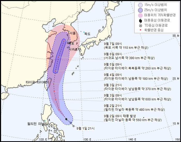 4일, 5일 후 태풍 위치가 유동적일 수 있으니, 이후 발표되는 기상정보에 유의바람.