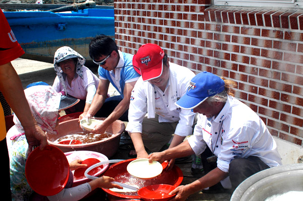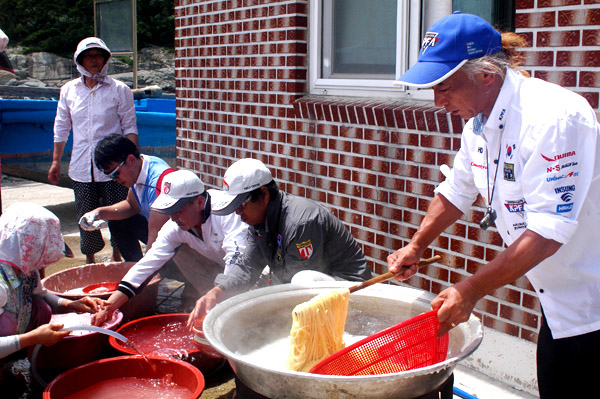 중국집이 없는 섬마을에서 특별식인 자장면 드시는 마을 주민들 자장면 만들기에 필요한 모든 재표를 육지에서 공수하여 손수 만들어 대접하여 더욱 뜻 깊었습니다.