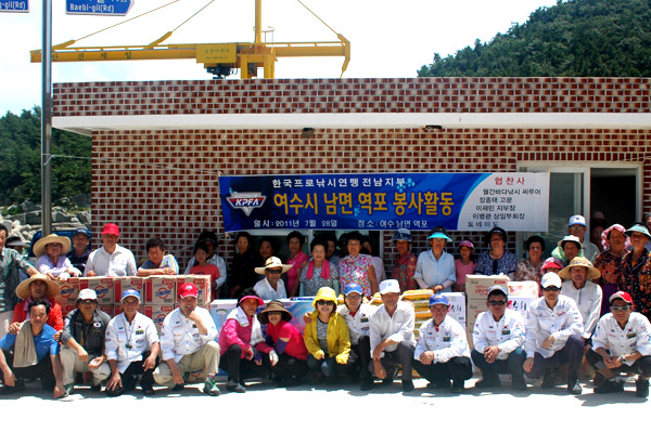 2011년 7월 28일 (목) 폭염이 찌는 한여름 사단법인 한국프로낚시연맹 전남지부 (지부장 김병근)와 순천 팔마 라이온스 클럽 (회장 김병근)에서 전남 여수 남면 소리도 역포마을로 자원 봉사 활동을 다녀왔습니다.