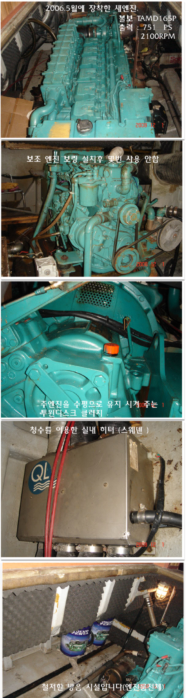 보조엔진과 발전기 21KW 에 1.5KW 수은등 6개 1KW 백열등 6개 시설되어 있습니다.