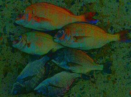 참돔은 수로 중간 부분 30m정도에서 입질받았고요.감시는 수로 왼쪽 초입에서 받았습니다.찌와 거리는 약 35m정도를 유지했고요.수심은13-15m내외로 하였습니다