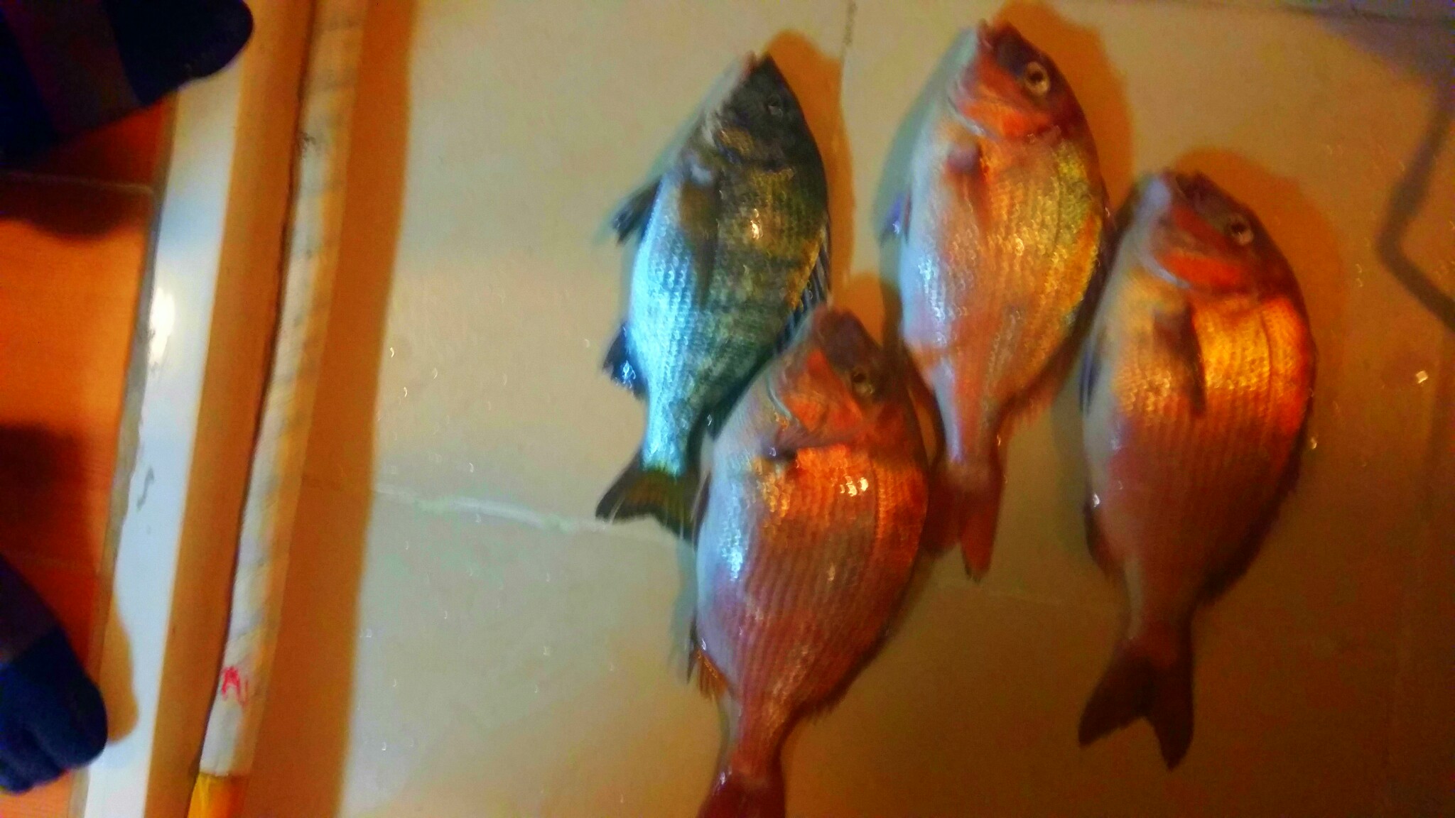 오늘 조과는 참돔6수.감성돔2수(사이즈 좋은 넘들은 하동 지인에게 드시라고4수 드리고)사진은 집에와서 찍어서 4수밖에 올리지 못했네요.비가 많이 와서 현장에선 사진을 못찍었습니다.