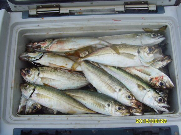 ⑥ 조황 요약 : 전갱이, 고등어, 풀치 섞어 1쿨러, 감성돔은 보너스