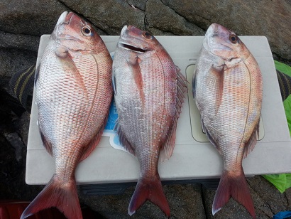 바다 상황을 극복한 우리들은 바다의 미녀 참돔 50급 1수, 40급 1수, 30급 3수로 총 5수를 만날 수 있어서 고생은 했지만, 행복한 날이었다.