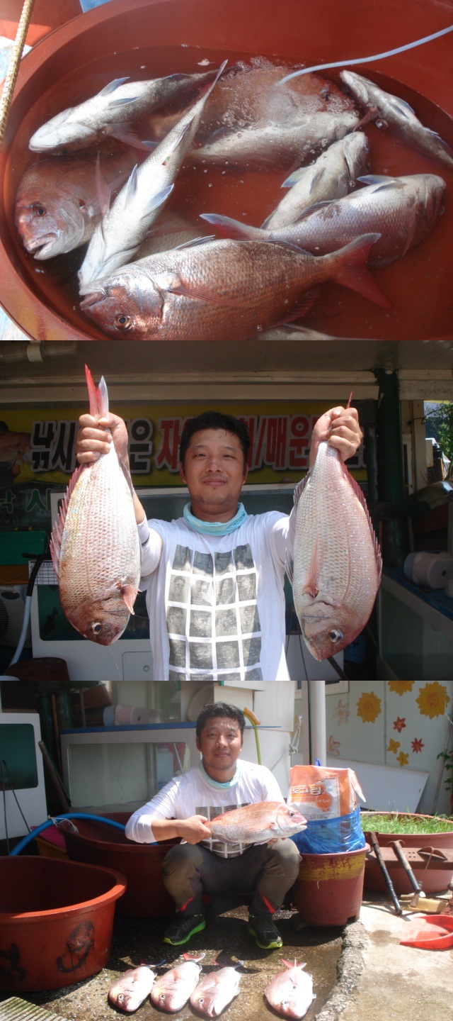 참돔 선상 두번 하였으나 꽝치고 야미도 바다 낚시집을 운영하시는 사장님께서 가르쳐 주신 덕분에 5짜 참돔을 무려 5마리나 잡을 수 있었습니다.