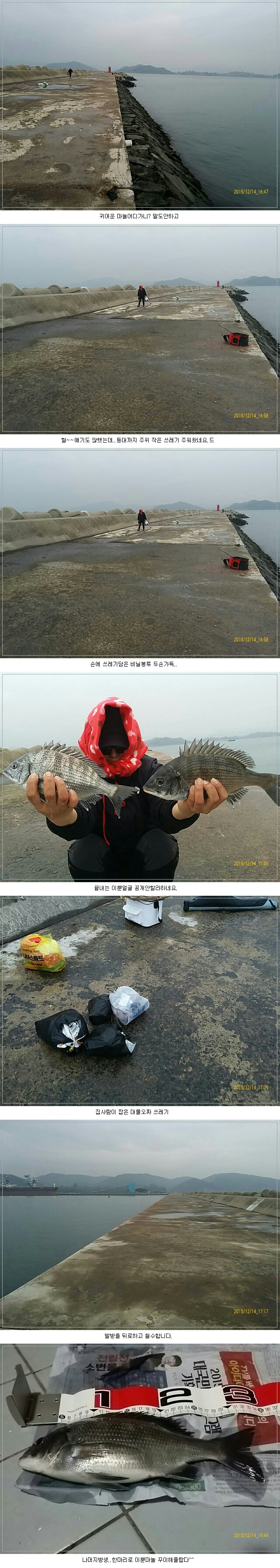 등대부터 중간까지 큰건 아니지만 자잔하게 흘려있는 쓰레기 주워담고 정말진정한꾼마눌~~이제 바늘묶는법 부터 가르쳐 주고싶네요.ㅎ