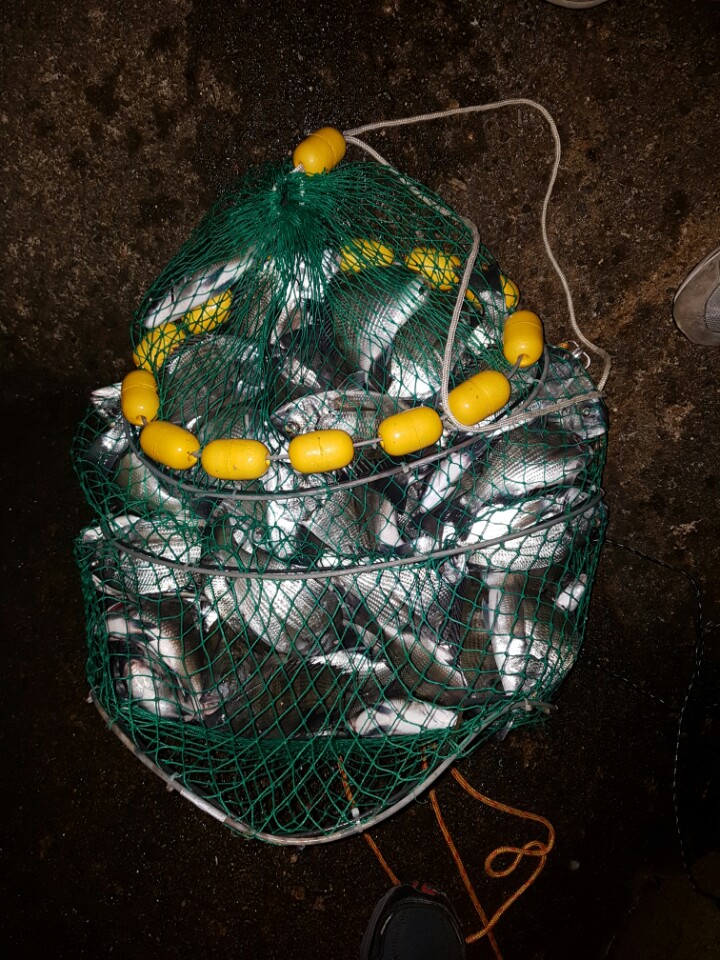 정확히 세어보진 못했지만 대략 130수정도 잡았네요..혼자서 부력망을 못들었어요..들다가 부력망 와이어까지 터져버리는 불상사가...ㅎㅎㅎ