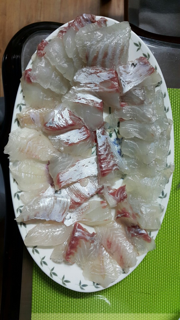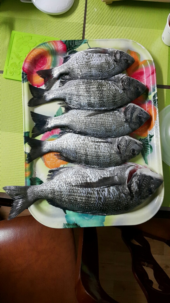 집에 도착후 한마리 손질해서 가족과 함께 감성돔회 맛점 함.