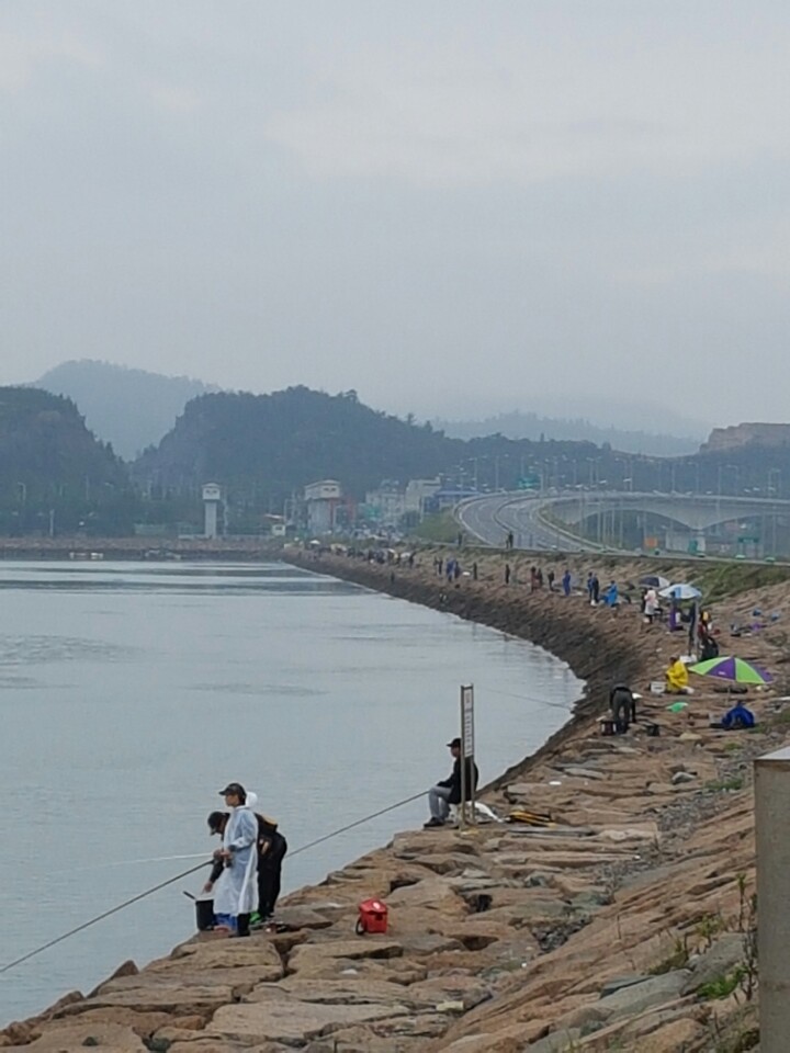 수문을터버리니 속조류는 가만잇는데 겉조류가 계속횡으로 엄청난속도로 몰아붙치네요 수문을닫고 1시간이지나자 입질이시작되엇습니다 1마리 2마리 따문따문올라옵니다 열심히하다보니 마릿수는한 10마리되네요^^ 디낚헤드라인에도 올라왓더군요 금호방조제 거기사진찍히신분뒤쪽에 검은색옷이저입니다.....ㅋㅋㅋㅋ 고기는많이들어왓으니 손맛보고가시길바랍니다