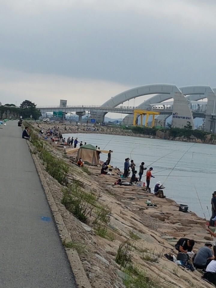 일요일이기도하고 내일이휴일이라 그넓은방조제가 사람설곳이없을정도로 빼곡하네요.....한번도안해본자리에서 해봅니다