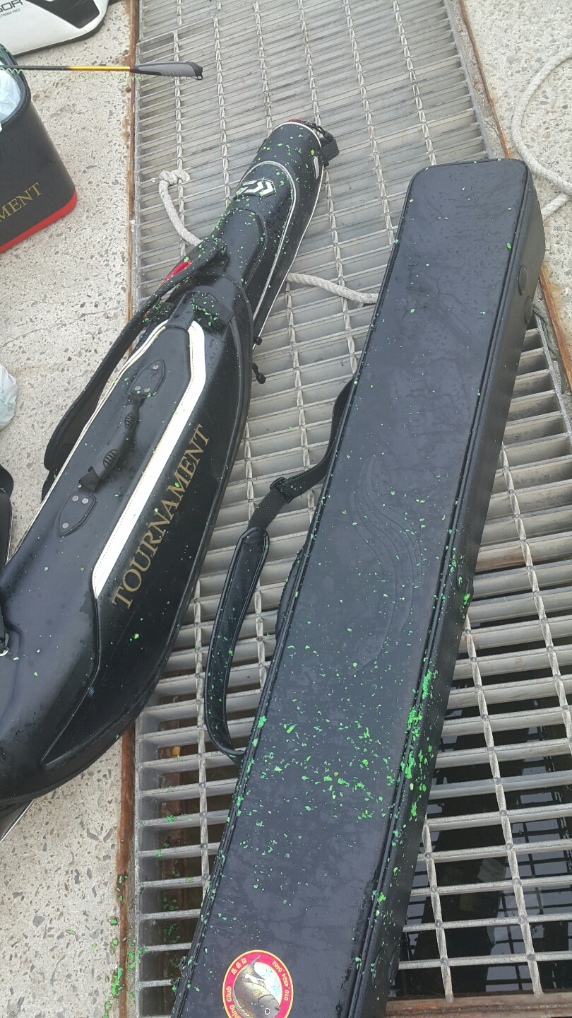 뱃전을 때리는 너울에 밑밥통에 물이 한가득넘쳐