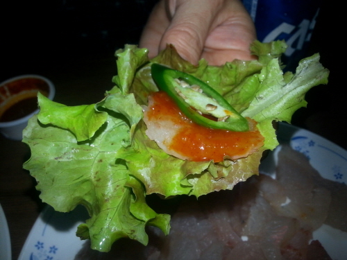 늦은 밤이라 서둘러서 1시간만에 두툼하게 썰은 긴꼬리 벵에돔을 안주로 하고
