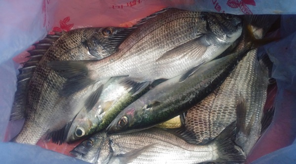 감성돔 23(방생) , 28, 29,29,31 5마리 잡고, 철수쯤 괜찮은 고등어 (30쯤) 2마리 올라와 같이 챙겨 봅니다..