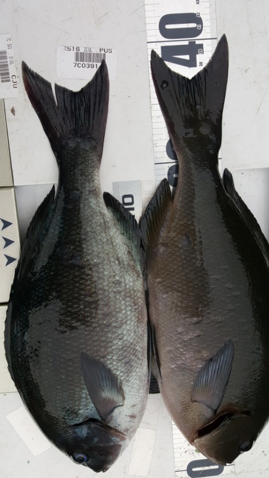 제가낚은 5짜 항줄깜정과 4짜일반벵에 그리고 4짜 긴꼬리 두종류입니다.